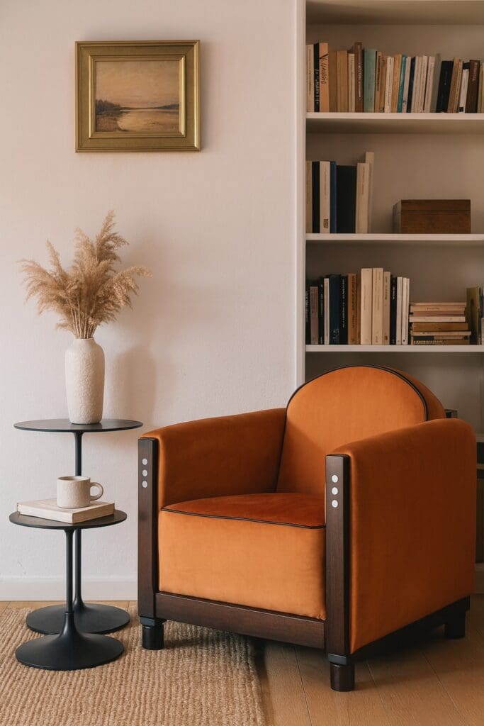 Het mooie is dat je met een fauteuil als de Rooker 03 ook meteen een statement maakt in je interieur. Deze Art Deco stoel straalt karakter uit door de combinatie van strakke lijnen, ronde vormen en luxueuze stoffering. In een setting met een stijlvolle lamp en zachte accenten ontstaat een leeshoek waar esthetiek en functionaliteit elkaar versterken.